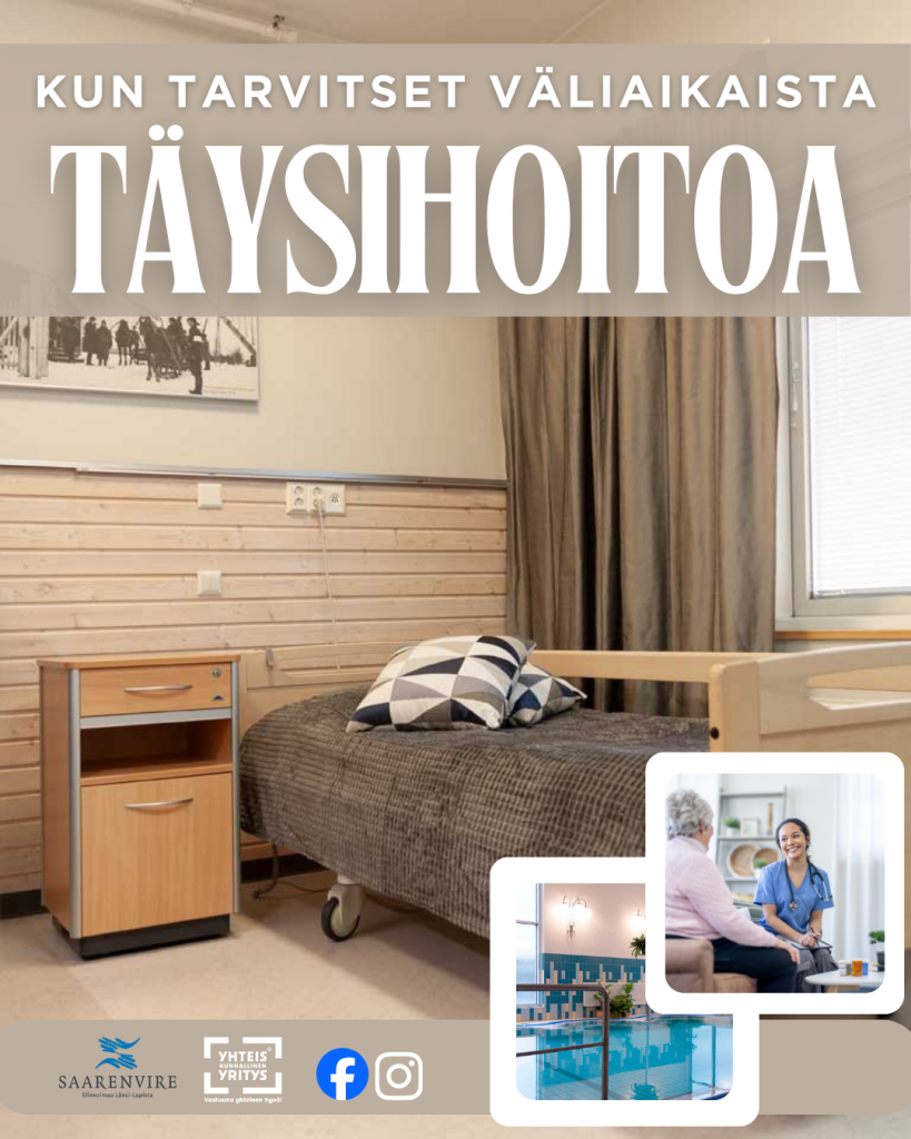 Kysy lisää ja varaa juuri sinulle sopiva paketti! Väliaikaista täysihoitoa Saarenvireessä – lepoa, kuntoutusta ja huolenpitoa – Saarenvire